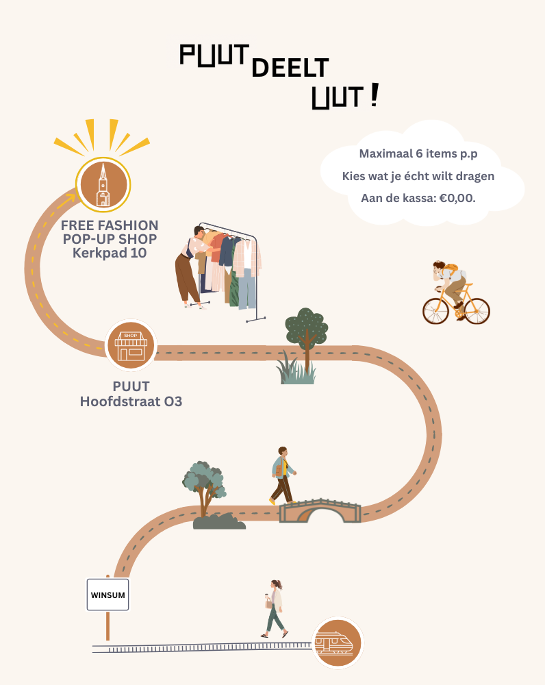 Het begon met een experiment: een winkel waar je mooie tweedehandskleding een nieuw leven geeft, en waar we samenwerken met lokale onderners en we ons richten op de buurt. Vijf jaar later? Negen PUUT winkels in de provincies Groningen, Friesland en Drente. We zijn trots op wat we samen hebben neergezet. En dat vieren we niet met korting, maar met geven.